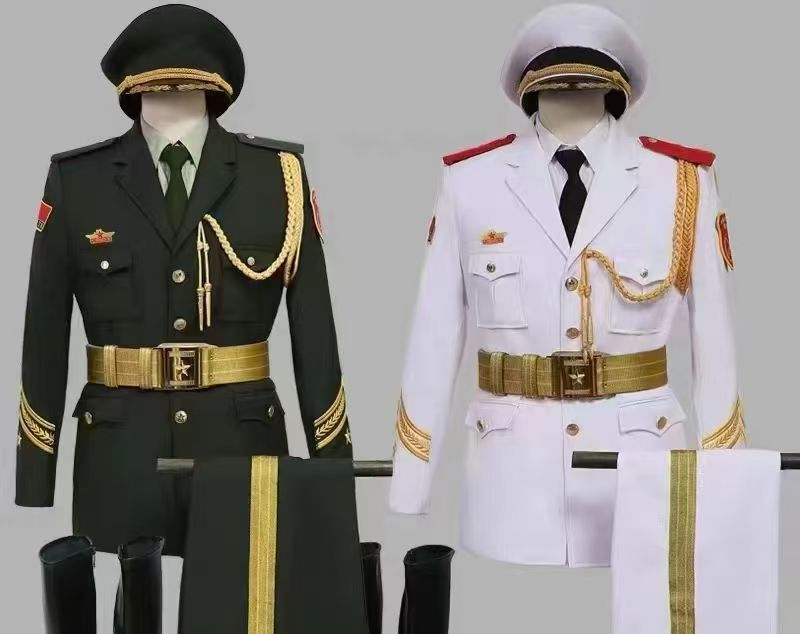 军乐队服装:银川咏歌军乐团等团体使用的服装属于军队演出正装,包括07式大阅兵新礼服乐队、07式新夏装乐队、87式夹克式夏装、87式礼服等。这类服装设计庄重,适用于政府重大典礼、会议、迎送国宾等正式场合。